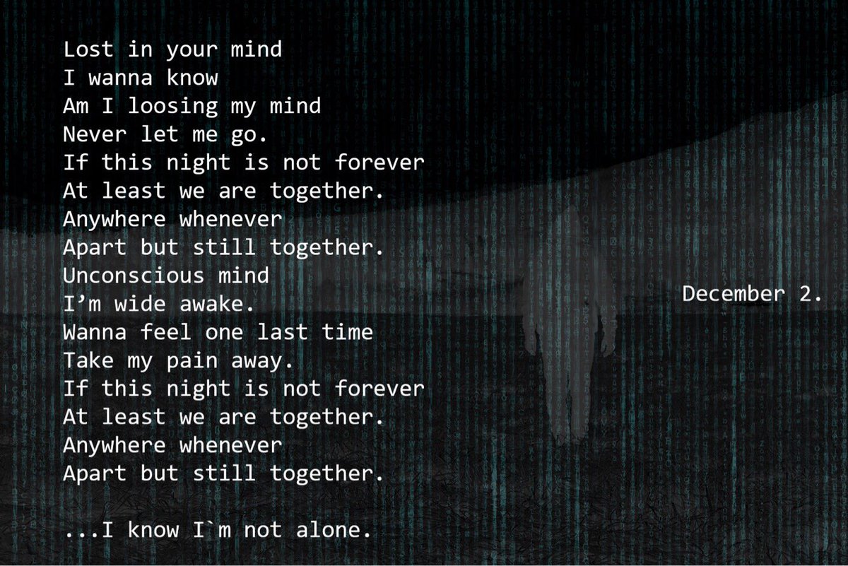 Carl(@carl_edits17), hiii ️(@editlyriczz), โ๐๐ฆ๐ (@user6752185469533), freeoverlay_.2britt(@free_.overlay13), somebody(@someone_craz). Explore the latest videos from hashtags: Noonie bao] if this night is not forever at least we are together i know i'm not alone i know i'm not alone anywhere, whenever apart, but still together i. In the second verse it says she has an “unconscious mind, i’m wide awake” says that she is thinking about her so much she seems unconscious, but she is actually wide awake. Watch popular content from the following creators: If this night is not forever, at least we are together cheesesqwee. I can't help but want to run to the light. Light out, look into your heart to find. If this night is not forever at least we are togheter lyrics.