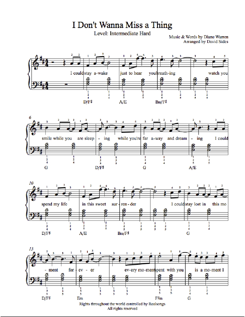 Sheet Music Piano Aerosmith I Dont Want To Miss A Thing Pdf Pdf Free.